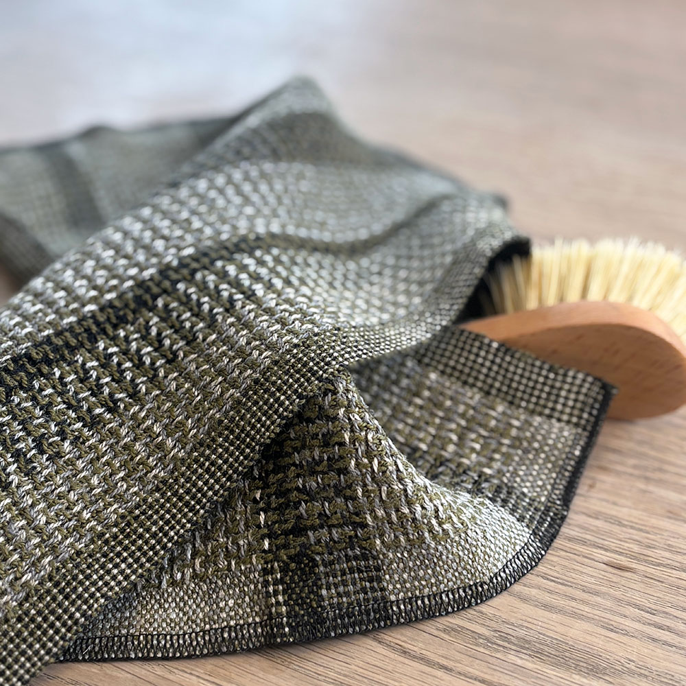 Håndvævet karklud i hør. Karkluden ligger fremme i vores lækre køkkener, hvor karkluden skal passe ind, være enkel og skabe ro for øjet. Den skal suge godt og tørre hurtigt.